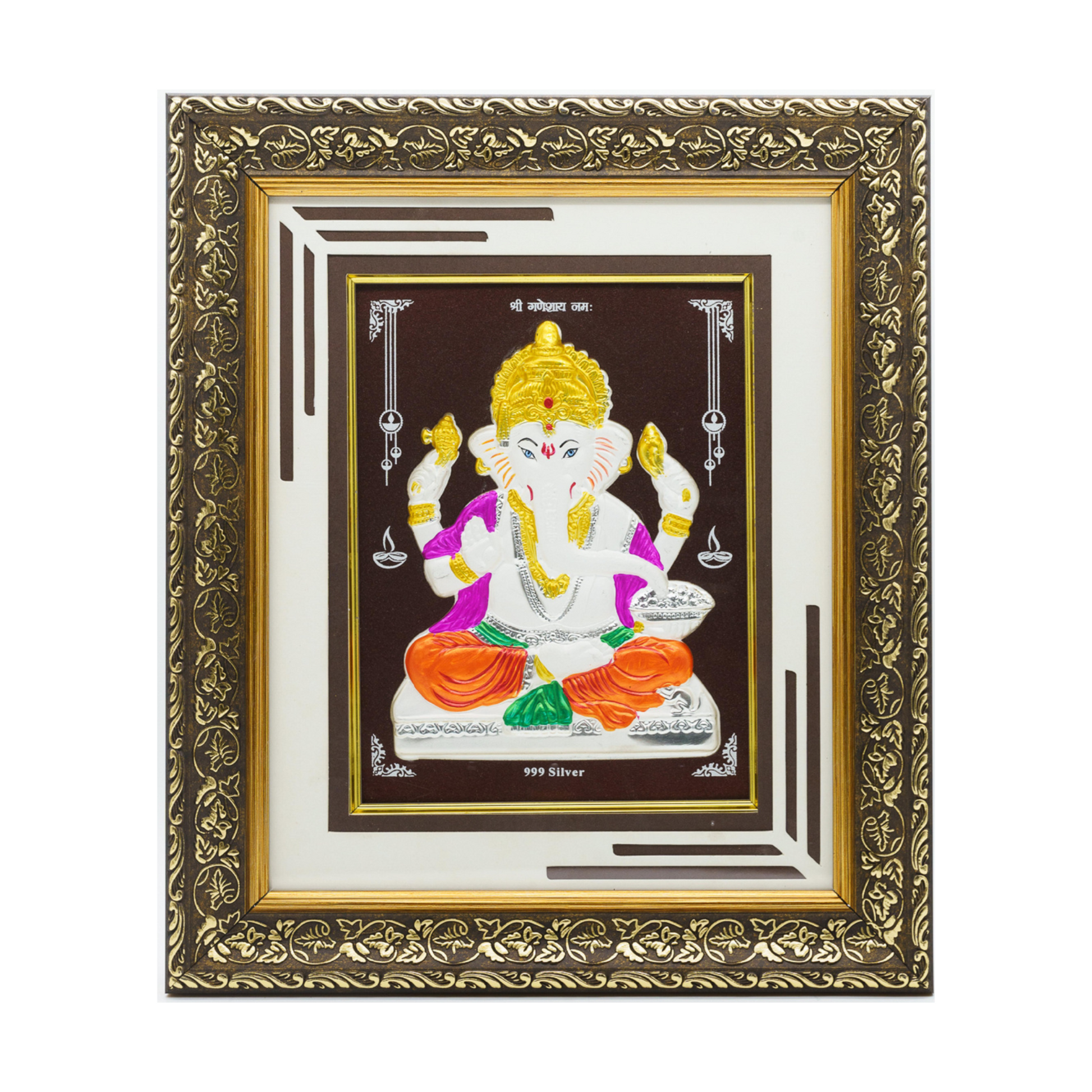 The 999 Silver Ganeshji Frame features a beautifully detailed depiction of Lord Ganesh in 999 pure silver. It symbolizes wisdom, prosperity, and the removal of obstacles, making it a perfect addition to any space for divine blessings.