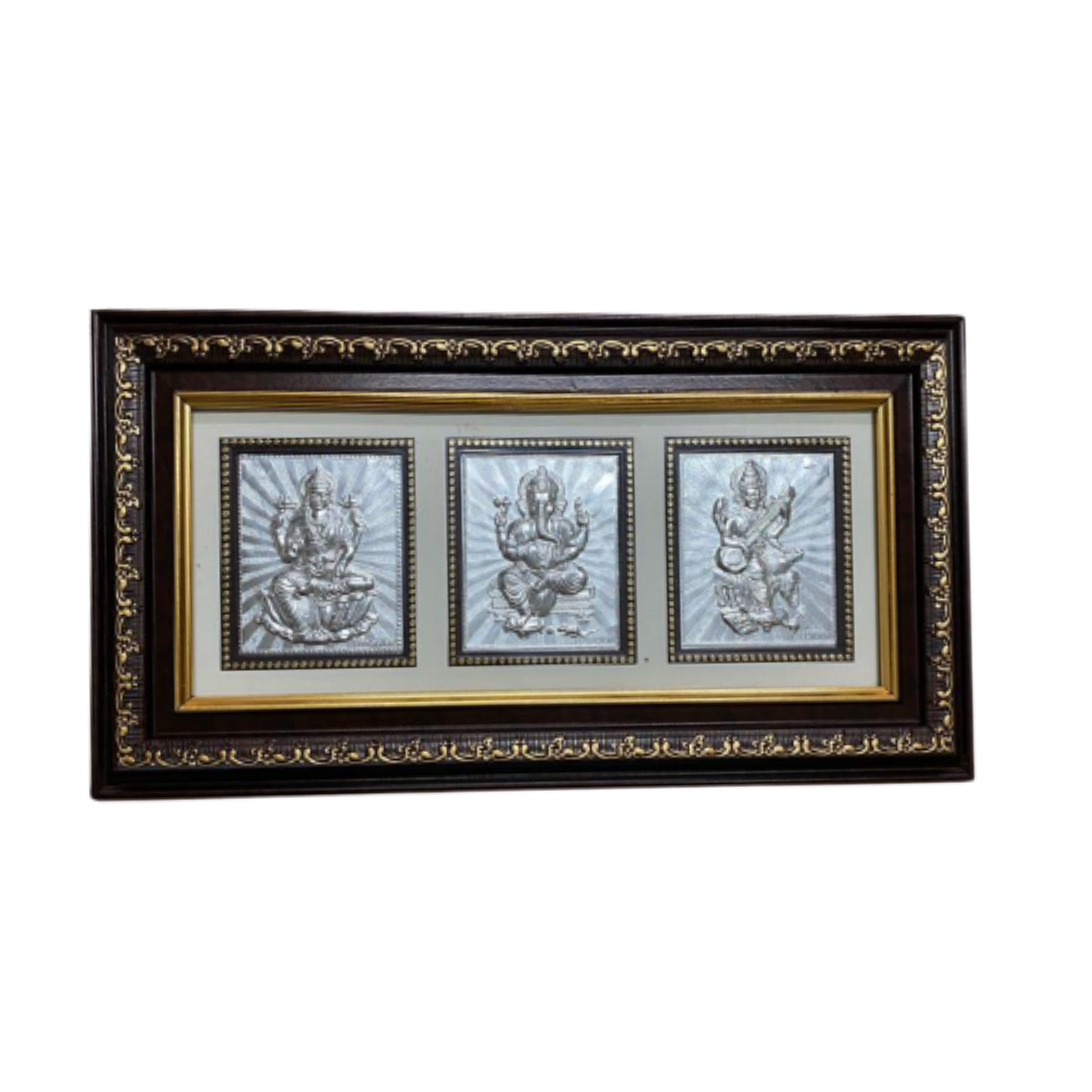 The 999 Silver Ganesh Lakshmi Frame features intricately crafted depictions of Lord Ganesh and Goddess Lakshmi in pure silver. It symbolizes prosperity, wealth, and divine blessings, making it a perfect addition to any space.