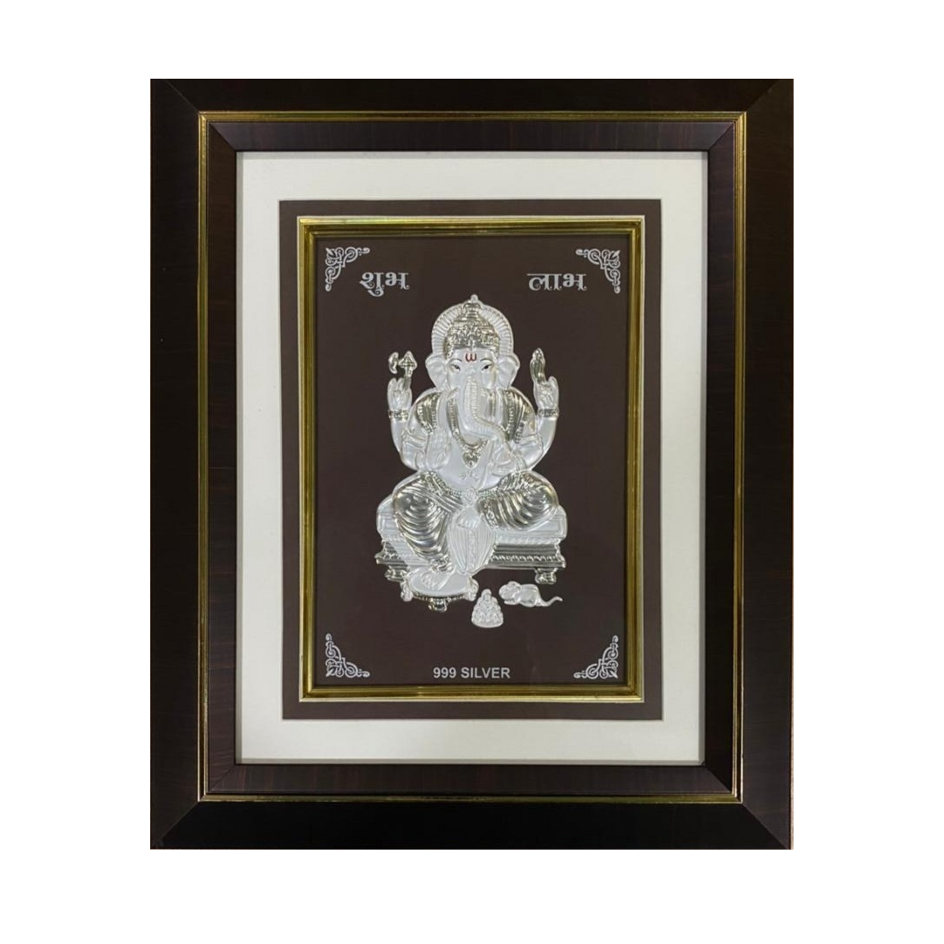 The 999 Silver Ganeshji Frame features a beautifully detailed depiction of Lord Ganesh in 999 pure silver. It symbolizes wisdom, prosperity, and the removal of obstacles, making it a perfect addition to any space for divine blessings.