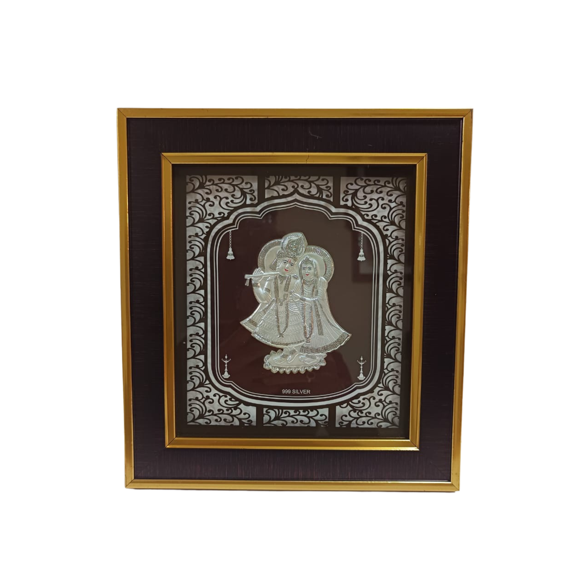 The 999 Silver Radha Krishna Frame beautifully captures the divine love and harmony between Lord Krishna and Radha, intricately crafted in pure silver. This frame symbolizes eternal love, devotion, and spiritual unity, making it an ideal centerpiece for any altar or living space. The lustrous silver finish enhances its elegance, infusing your home with divine blessings and peace.