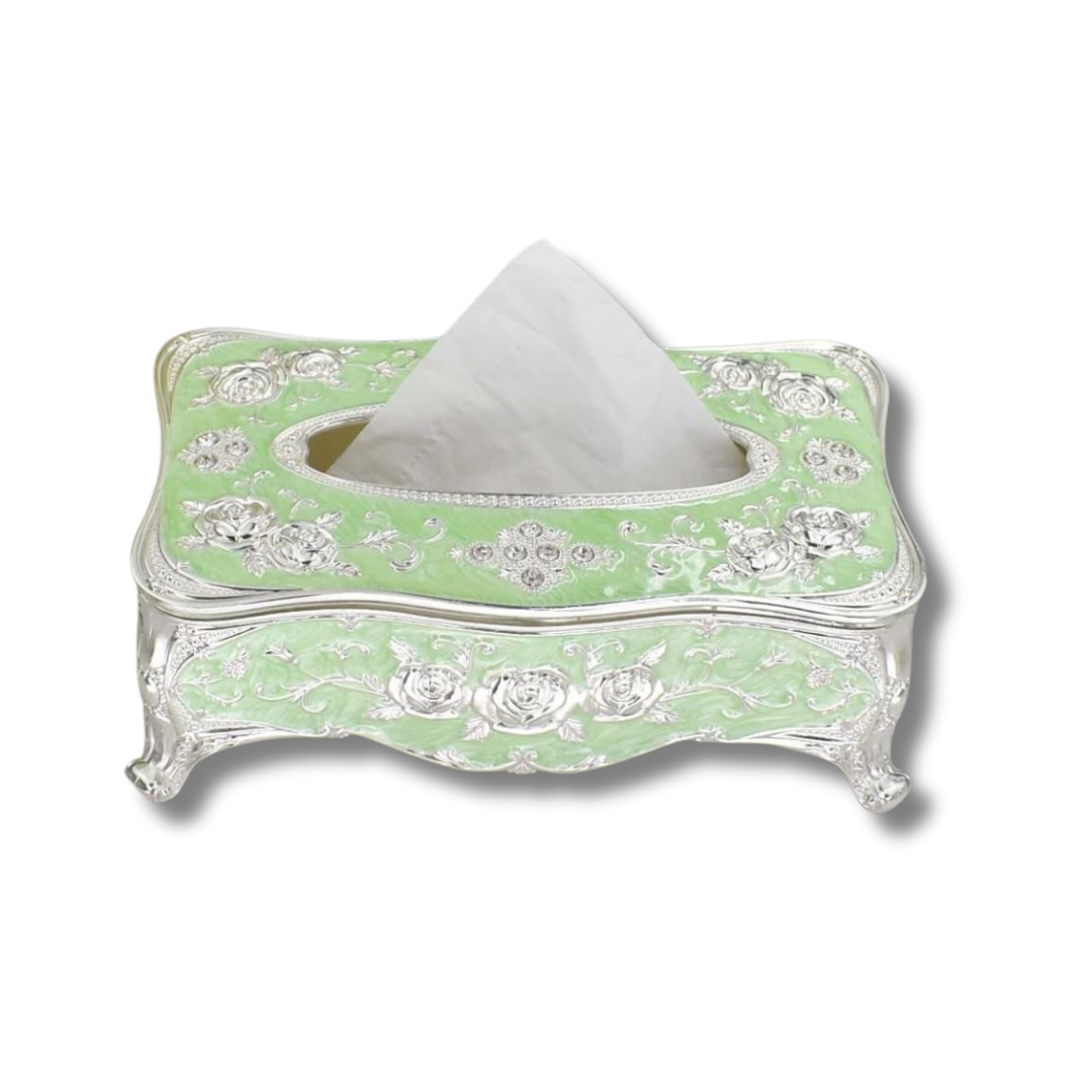 "Bring a refreshing touch to your home with the Enamel Tissue Box in Green. Its vibrant hue and smooth finish add a pop of color while maintaining a sleek, sophisticated look."