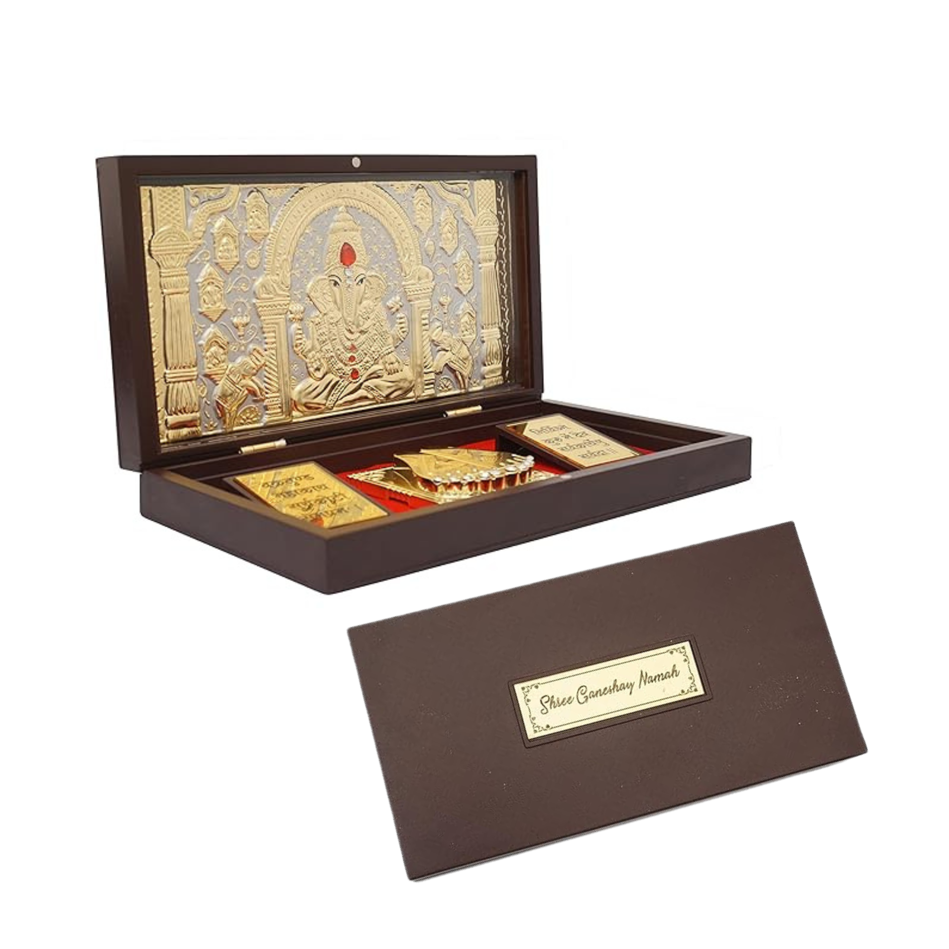 Embrace the blessings of Lord Ganesh with the Ganeshji Pocket Temple. This portable masterpiece is a symbol of wisdom and prosperity, designed to keep divine grace close to you. Ideal for travel, workspaces, or gifting cherished ones!