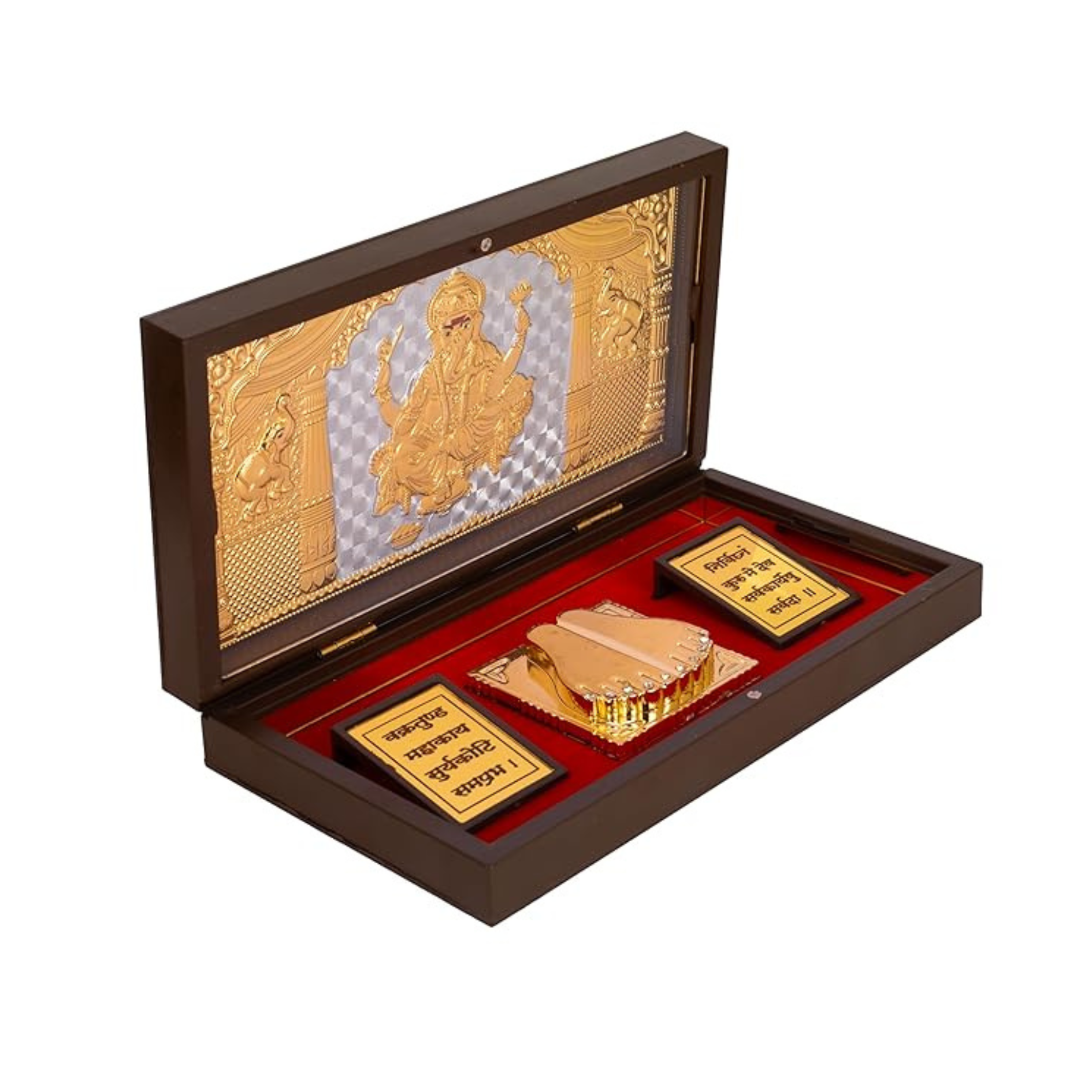Embrace the blessings of Lord Ganesh with the Ganeshji Pocket Temple. This portable masterpiece is a symbol of wisdom and prosperity, designed to keep divine grace close to you. Ideal for travel, workspaces, or gifting cherished ones!