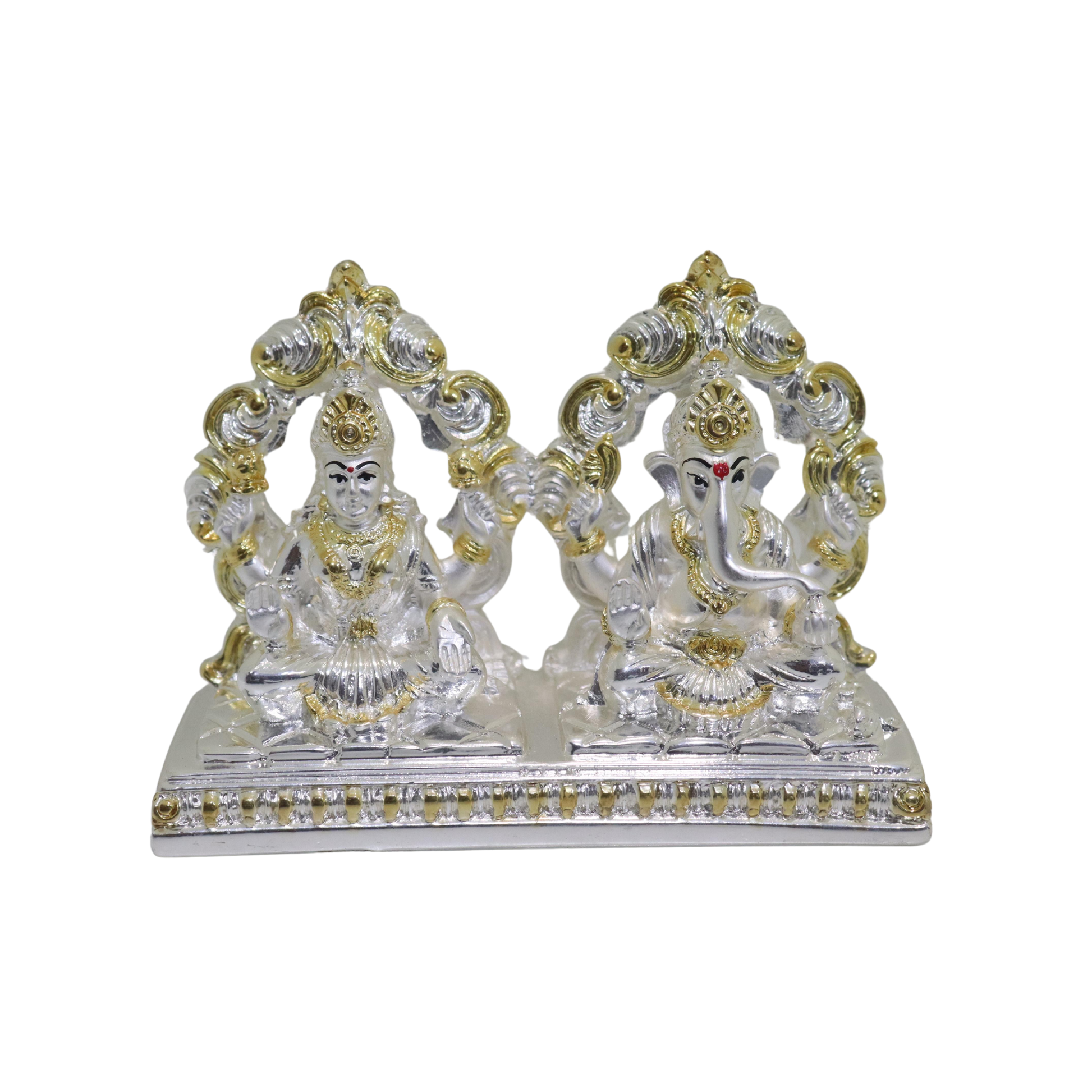 The Silver and Gold Plated Ram Darbar features intricately designed figures of Lord Ram, Sita, Lakshman, and Hanuman, finished in silver and gold. This elegant set is a sacred representation of divine protection, perfect for worship or home decor.