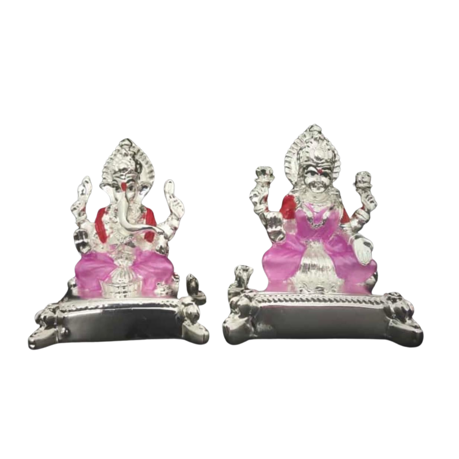The Silver Plated Ganesh Lakshmi Idol beautifully combines the divine figures of Lord Ganesha and Goddess Lakshmi, symbolizing prosperity, wealth, and success. With its elegant silver finish, this idol is perfect for blessings in your home or temple.
