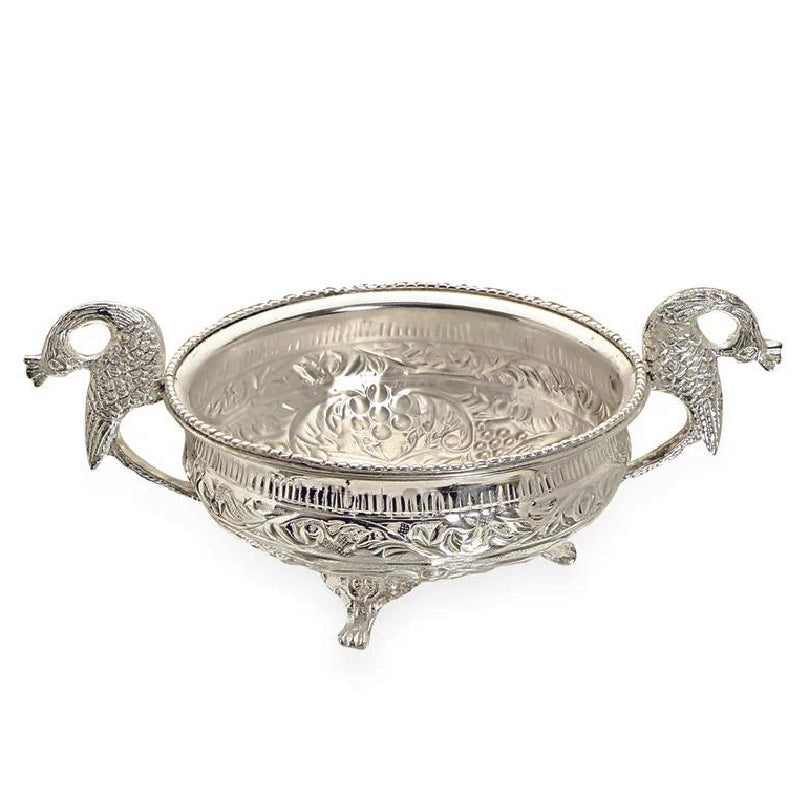 The Peacock Urli is an exquisite decorative bowl adorned with intricate peacock designs, representing grace and beauty. Perfect for adding a touch of elegance to your home, it can be used to hold floating flowers, candles, or water, creating a serene and festive ambiance. A stunning centerpiece for any occasion!
